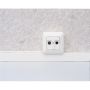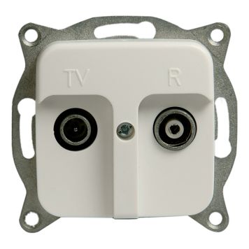 Med siste motstand. Jussi-serien i fargestabilt materiale som ikke gulner. Antenneuttak TV/RADIO med sluttmotstand For innfelt montering, velg en av Jussi-seriens rammer og for utenpåliggende montering, f.eks. en hjørneboks er valgt. Er et strømuttak med innebygd motstand.