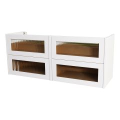 Møblene i denne størrelseskategorien er laget av materialer som tåler både fukt og daglig bruk – ofte kombinert med eksklusive overflater som matt svart lakk, trefinér eller høyglans hvit. Det gir både lang levetid og et baderom som føles elegant og innbydende. Også detaljene holder høy standard, med beslag i metall, myk-lukkende funksjoner og integrert belysning. Noen modeller har i tillegg vannresistente overflater og kantforsterkninger som ytterligere forlenger holdbarheten.