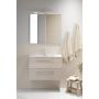 Underskap i melamin med soft-close og PU-lakkert front i MDF, velg mellom dører eller skuffer. Håndtak følger med baderomsmøblene, hullene er ikke forboret. Kombiner settet med enten et LED-speil eller speilskap. Speilskapene leveres også ferdig montert med myktlukkende dører og dobbeltsidige speil. Kjøp til en hjørneboks med 230V strømuttak i kromfarge som kan monteres både i underskap og speilskap.