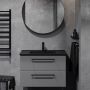 Komplett baderomsmøbel som inneholder en moderne tynnere porselensservant, et gråmatt underskap me...