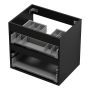 Underskapet kommer ferdig montert (det eneste du trenger å montere selv er frontpaneler og håndtak) og har to myktlukkende metallskuffer. Den øverste skuffen har smarte skillevegger i akryl og begge skuffene har myke plastmatter for enklere rengjøring.