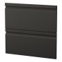 Komplett baderomsmøbel som inneholder en moderne tynnere porselensservant, et sort matt underskap med to myktlukkende skuffer og en skuffefront med integrert håndtak. Baderomsmøbelet har et enkelt, men stilig design som gir badet ditt et moderne preg. Underskapet kommer ferdig montert, det eneste du trenger å montere selv er skuffefront og håndtak. Med Camargue Skärgård kan du enkelt sette sammen et unikt bad tilpasset stil, plass og behov. Kombiner gjerne baderomsmøblene med høyskap i samme serie og ikke glem å gjøre møblene komplette med speil eller speilskap.