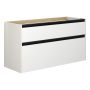 Denne baderomspakken kommer med flere stilige alternativer. Med rette og rene linjer kan møblene gi ulike uttrykk avhengig av valg av underskap og speil. Med ekstra valg av LED-belysning, blandebatteri og sideoppbevaring kan du lage et vakkert bad etter din egen smak.