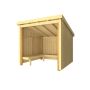 Pluss bålhus er en koselig tilbygning og et naturlig møtested for sosiale aktiviteter ved bålet. Den tilbyr overbygde sitteplasser med en komfortabel sittehøyde på 42 cm samt lagringsplass for ved. På den måten har du alltid brensel til bålet for hånden og kan sitte under bålhuset mens barna griller marshmallows rundt ilden. Gammelstuen har en ensidig takvinkel, noe som gir den et moderne utseende og får den til å føles romsligere. Det er også mulighet for å gjøre stuen til din egen ved å male, beise eller olje fasaden eller dekorere den med lyslenker for stemningsfull belysning, uansett om du fyrer eller ikke! Stuen er beregnet å ta cirka 7 timer for 2 personer å montere eksklusive fundament.
