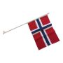 Balkongflagg Norge med stang i metall og toppkule. Veggfeste i metall med 60° vinkel, samt 90 cm fargeekte flagg i 100% p...