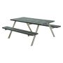 Inviter venner og familie til en koselig sammenkomst i hagen med et bord og benkesett i grått som samlingspunkt. Dette b...