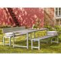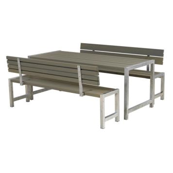 Benkesett med bord og 2 benker med ryggstøtte. Flott om du vil samle familien, vennene eller kollegene for frisk luft ute. Bordplaten er romslig og det er plass til alt du måtte trenge av asjetter, kopper, pålegg etc. Settet leveres som et monter-selv sett og er enkelt å sette sammen.