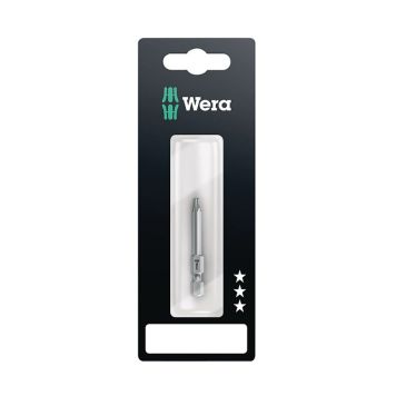 Premiumbitsene fra Wera er spesielt egnet for tøffe skrujobber. Med en lengre skaft på 50 mm kan de nå skruer i dypere hull og lette arbeidet. Det tøffe og harde materialet gir lang levetid med mindre slitasje.