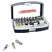 31 skruer, for de vanligste skruetyper og størrelser. Universalholder med hurtigbyttesystem og låsing gir sikker bitfeste og raske endringer.