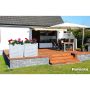 Blomsterkassen i elegant serie som er trykkimpregnert og grunnmalt i hvit. Hjørnet er laget av stål og er laget i nordisk gran.