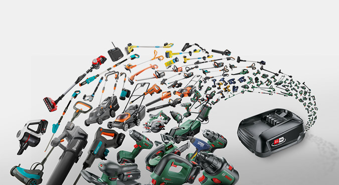 I POWER FOR ALL18V-systemet passer ett enkelt batteri til alle maskinene. Siden 2007 har batteriet vært 100 % forover- og bakoverkompatibelt med alle grønne 18 V Bosch-maskiner.