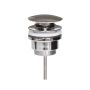 Bunnventil i krom. Lukkes og åpnes med et lett trykk - såkalt push-teknologi. Med breddeavløp for servant.