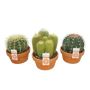 Vår kaktusmiks kommer i en stilfull leirskål som gir et naturlig og rustikt preg til interiøret ditt. Leirskålen er designet for å komplementere plantens naturlige skjønnhet, og skaper et harmonisk uttrykk som passer perfekt i både moderne og tradisjonelle hjem.