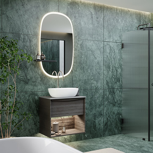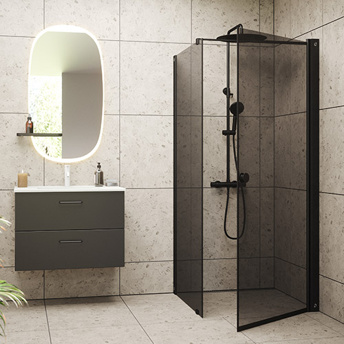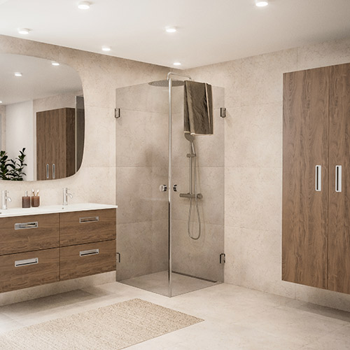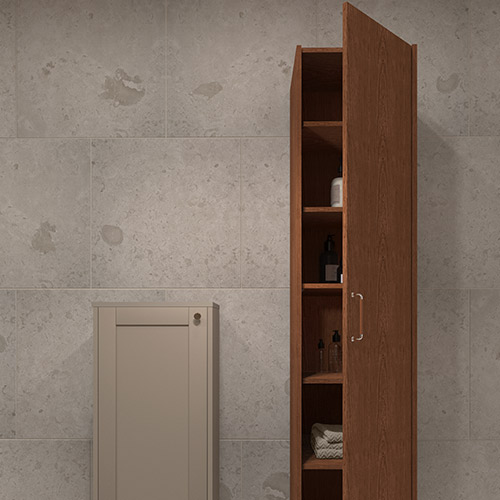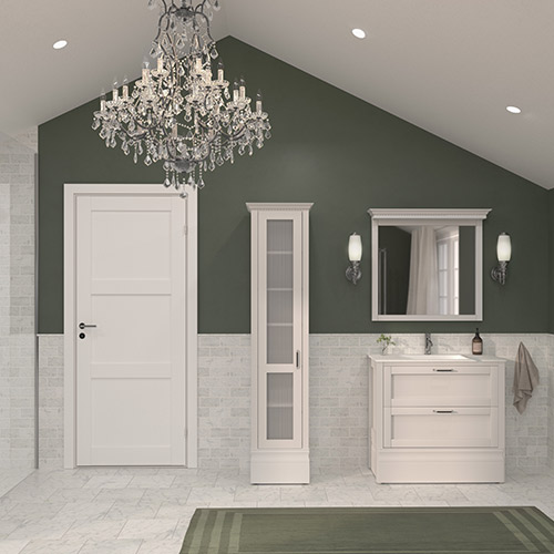 - Praktiske side- og overskap som gir utvidet lagringsplass og muligheter for ditt unike bad.
