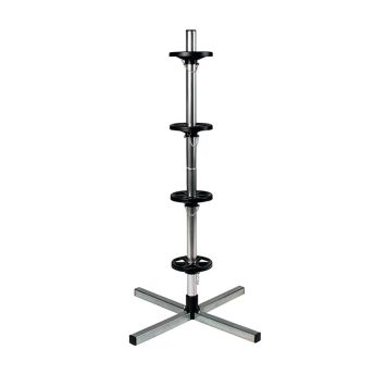 Laget av robust metall og dekket får stabil støtte. Med dekkhyllene i plast unngår du riper på felgene. Stativet kan håndtere opptil 225 mm brede dekk og er derfor egnet for de fleste typer dekk.