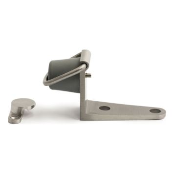 Klassisk og praktisk dørholder med integrert dørstopper som beskytter både dør og vegg fra riper og skader. Dørstopperen er i gummi og øvrig materiale er rustfritt stål. Skruer til feste medfølger.