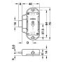 Lås med stopp til venstre. Nøkkelhullet er 25 mm fra kanten.