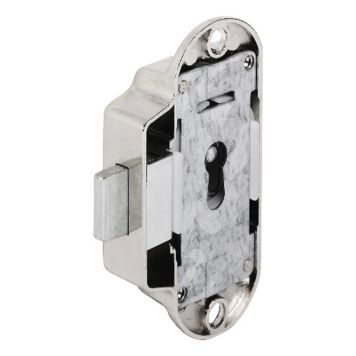 Lås med stopp til høyre. Nøkkelhullet er 25 mm fra kanten.