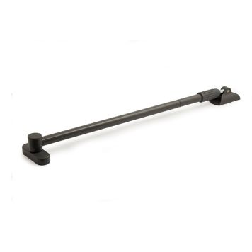 Monteres på anslagssiden. Feste og teleskoprør i lakkert stål. Stang i rustfritt stål med leddhode og justeringshylse i plast.
