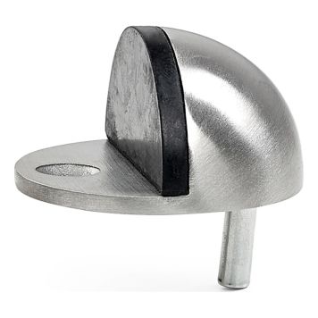 Pen dørstopper i rustfritt stål med gummibuffer. Dørstopperen beskytter effektivt både vegg og dør mot slitasje og skader kan monteres i gulv av tre eller stein.