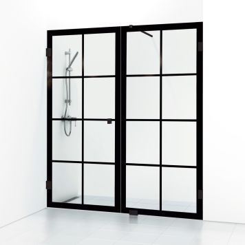 180° Rista består av to åpningsbare dører med magnetstripe. Dørene kan vikes innover når dusjen ikke er i bruk, noe som frigjør maksimal gulvplass. Hver dør leveres med 4 avstandsstykker som kan brukes til skrånende baderomsvegger, maks 8 mm. Mulig trinnløst å endre nullposisjonen.