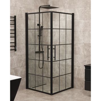 Gi badet ditt en trendy og stilig detalj med dette dusjhjørnet. Dørene er laget av 6 mm NANO-behandlet herdet sikkerhetsglass med en sjenerøs høyde på 198 cm. Nanobehandlingen gjør det mye lettere å holde rent og smuss fester seg ikke like lett. Utsiden av dørene er belagt med et silketrykk som imiterer sprosser.