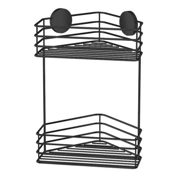Flott dusjhylle med moderne matt sort farge. Den er tilpasset hjørner og er både dekorativ og praktisk, med de to hyllene sikrer du at du har plass til alt du trenger i dusjen. Dusjhyllen monteres enkelt med medfølgende selvklebende tape slik at du slipper å bore på badet. Anbefales ikke for våtromstapet.