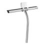 Dusjnal med selvklebende holder i krommet rustfritt stål og blad i svart silikon.