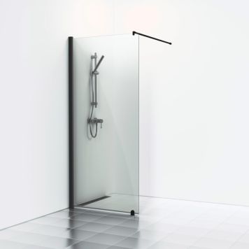 Dusjvegg med herdet sikkerhetsglass 6 mm. Veggprofilen tillater rørføring 30 mm fra veggen. D...