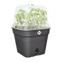 Boksen har en innebygget vannbeholder som du enkelt kan fylle opp etter behov. Med lokket på får plantene det perfekte klimaet til å spire og vokse raskere.