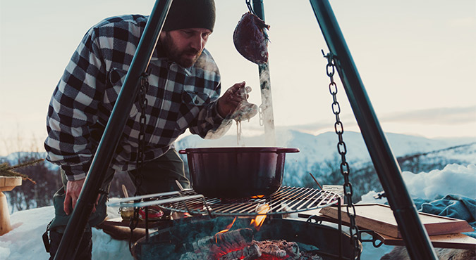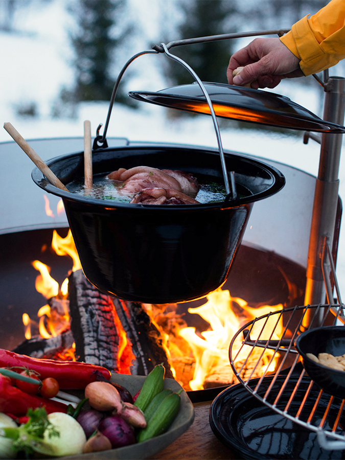 Varme gryter hører høsten og vintern til. Når gryten i tillegg lages over knitrende og varmende flammer blir matopplevelsen noe helt spesielt. Maten smaker bedre når den lages og nytes utendørs, derfor er dette en oppskrift som må prøves ut i vinter.