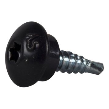 Farmerskrue med borepiss beregnet for montering av profilert plate mot treunderlag og plate mot plate ved overlapp. Skruen er laget av herdet stål med blankforsinket overflatebehandling og lakkert med polyesterpulverlakk. Galvanisert stålskive med EPDM-tetning.
