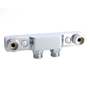 Forkrommet og stabilt feste til blandebatteri beregnet for utenpåliggende rørføringer med koblingsrør i 40CC. Kompakt modell av messing med tilkobling til blandebatteri G20 og tilkobling til innløp G15, for både plan- og konturtetting.