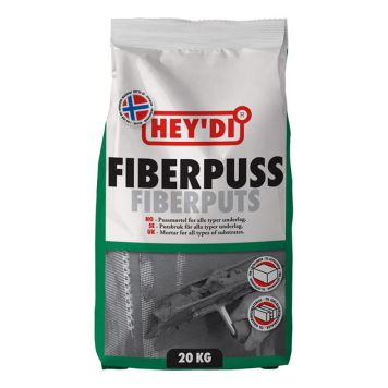 Hey’di Fiberpuss er en sprøytbar fiberforsterket tørrmørtel laget av spesialsement, kalk, gradert sand og tilsetningsstoffer. Hey’di Fiberpuss har god vedheft og fleksibilitet. Skal kun blandes med rent vann for å få en bruksferdig mørtel.