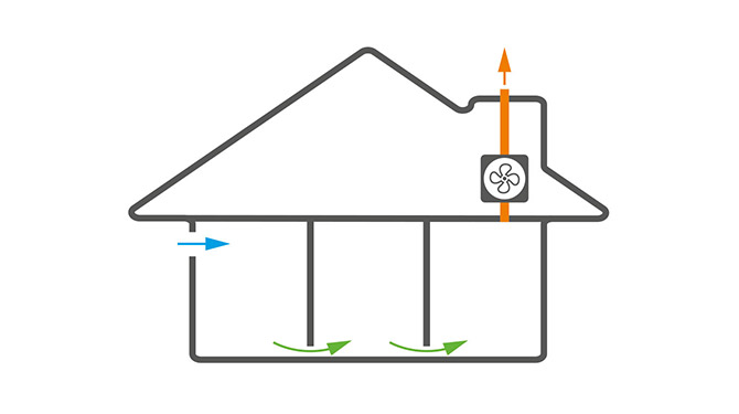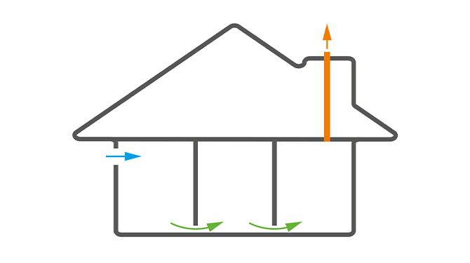 Dette gjøres via to separate kanalsystemer, et for å fjerne luft og et for å tilføre luft.