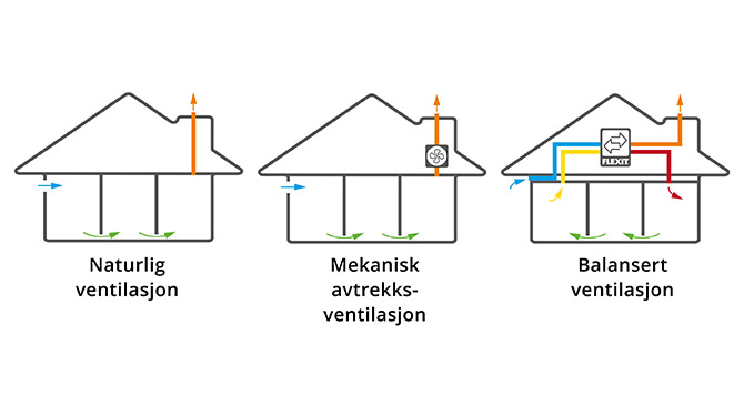 Her får du en forklaring på de tre ulike ventilasjonstypene
