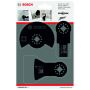 Består av 3 essensielle tilbehørsdeler. Dette settet er skreddersydd for grunnleggende flis- og baderomsrenoveringer og er uunnværlig for enhver gjør-det-selv-entusiast.Settet inneholder tre Starlock-tilbehørsdeler som kan håndtere utskjæring av fuger mellom fliser, skraping av mørtel og dykksaging i tre og ikke-herdede metaller. Ideell for utskjæring av fuger og presisjonsarbeid på myke veggfliser, skraping av mørtel og fliselim samt dykksaging av kobberør. Kompatibel med alle Starlock-, Starlock Plus- og Starlock Max-elektroverktøy samt vanlige multiverktøy. Starlock Snap-In-monteringssystemet muliggjør rask utskifting av bladet på bare 3 sekunder uten problemer. Optimal kraftoverføring sikres via Starlock-opptak, som garanterer effektivitet og enkel utskifting av bladet.