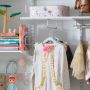 Garderobestangen hektes inn under en trådkurv eller hyllekurv med lengde på 30 cm.