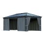 Et estetisk tiltalende og funksjonelt gardinsett for paviljongen! Øk din komfort ved å slippe inn frisk luft, men samtidig la gardinene skygge deg. Disse er designet for å sikre kompatibilitet med Canopias paviljong-sortiment. Gardinene leveres med kroker som enkelt installeres og glir inn i klipsene i skinnene på paviljongen din. Disse kan forsegle hele paviljongen takket være glidelåsene og festes til hjørnestolpene med bånd. Ingen vedlikehold kreves, og myggnettet kan også maskinvaskes.