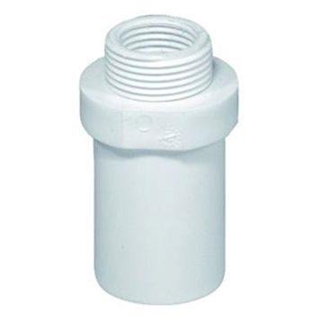 Rett ansluttning med glatt ende og innvendig gjenge. Produsert i hvit PP.