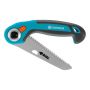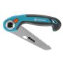 Låseknappen holder sagen fast i tre ulike posisjoner. Og dersom du ikke trenger sagen folder du den bare sammen igjen. Sagbladet forsvinner trygt inn i det flotte håndtaket. Under saging forhindrer en stopper på enden av håndtaket at hånden sklir. Dette har vist seg spesielt nyttig under dragende bevegelser og hjelper deg med å sage på en enkel måte. Takket være det ergonomiske, lett vinklede håndtaket og de myke håndtaksdelene ligger sagen behagelig og trygt i hånden. Sagen kan lagres uten å oppta stor plass og henges på et lett tilgjengelig sted ved bruk av opphengsøyet. Garantiperioden er 25 år.