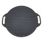 Den ene siden av grillpannen er riflet, noe som gjør den velegnet for grilling av for eksempel kjøtt og grønnsaker, mens den flate siden er velegnet for steking. Dette gjør det mulig å prøve ut ulike oppskrifter og teknikker på gassbluss.
