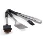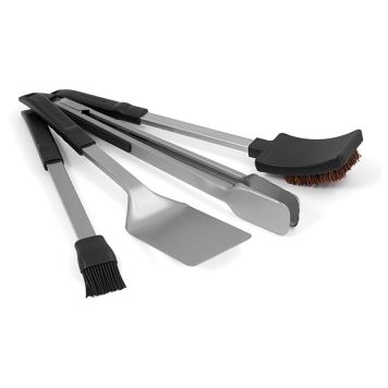 Dette settet er det perfekte grilltilbehøret når du griller. Det innholder en grilltang, grillspade, grillbørste og en grillpensel. Samtlige redskap er i robust rustfritt stål og har varmeavvisende gummihåndtak. Tanger er perfekt å gripe tak i og vende maten med og er utstyrt med tagger på skaftet. Grillspaden er ideell for å vende hamburgere eller annet. Grillpenselen vil bidra til å sette ekstra god smak på maten før grillseansen starter, og grillbørsten er utmerket til rengjøring av grillen avslutningsvis.