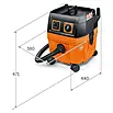 Veldig kompakt grovstøvsuger med mulighet for både våt- og tørrstøvsuging. Tilkobling av el-verktøy ved verksteds- og monteringjobb. Turbinen er veldig kraftfull og har en luftstrøm på hele 70 liter per sekund og et undertrykk på 253 Mbar. Verktøysmuffen har sugekraftregulering og en enkel innstilling finnes med 0 som tilvalg. Maskinen er godkjent for støvklasse L.