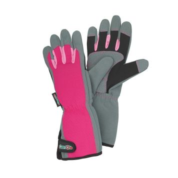 Denne arbeidshansken er laget av elastisk, pustende stoff og utstyrt med et ekstra langt skaft som beskytter håndleddet og underarmen. Håndflaten er forsterket med silikonnutter for å sikre at du har et godt grep om verktøyene.