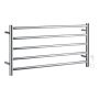Nyt livet på badet! Bred håndkletørker i polert rustfritt stål som kan fullføres med praktiske tilbehør i samme serie i form av kroker og kleshengere. Varmeren er utstyrt med AV/PÅ-bryter.