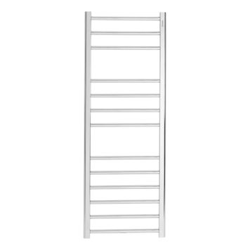 En enkel håndkletørker med runde former. God avstand mellom stengene gjør det enkelt å henge opp og ta ned håndklær. Kan kobles til elektrisk, til et eksisterende radiatorsystem eller som en kombinasjon av begge.