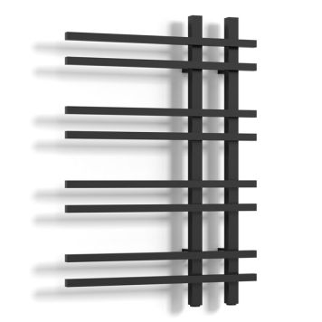 Stilren og trendy håndkletørker. De gode mellomrommene og det åpne designet gjør det enkelt å henge opp og ta ned håndkler. Vendbar - kan monteres med åpningen til høyre eller venstre. Finnes i svart og i krom. Kan enten kobles til elektrisk, til et eksisterende radiatorsystem eller som en kombinasjon av begge.