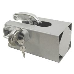 Hengelås i rustfritt stål i størrelse 70 mm. Passer til blant annet kulekoblingslås. Inkludert to nøkler.