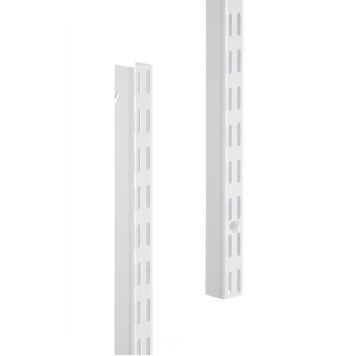 En praktisk hengeskinne som holder hyller, kurver og andre oppbevaringsløsninger oppe. Enkel å montere og justere. Du plasserer skinnen på bærelisten og justerer til ønsket posisjon. Ved behov kan du også feste skinnen mot veggen gjennom de integrerte skruehullene.